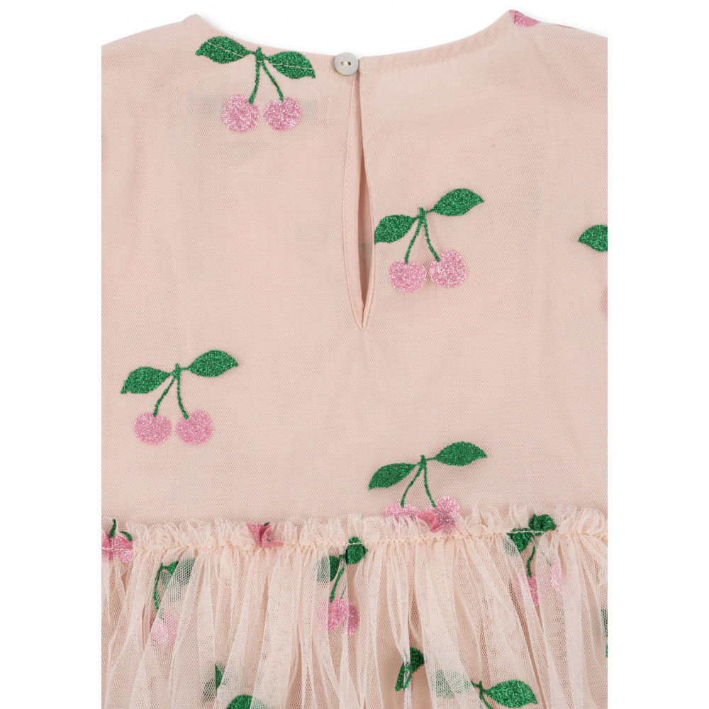 The Tullie dress has puff sleeves, a ruched top part with sheer tulle, and a voluminous skirt. Made from 100% polyester with a soft 100% cotton lining .