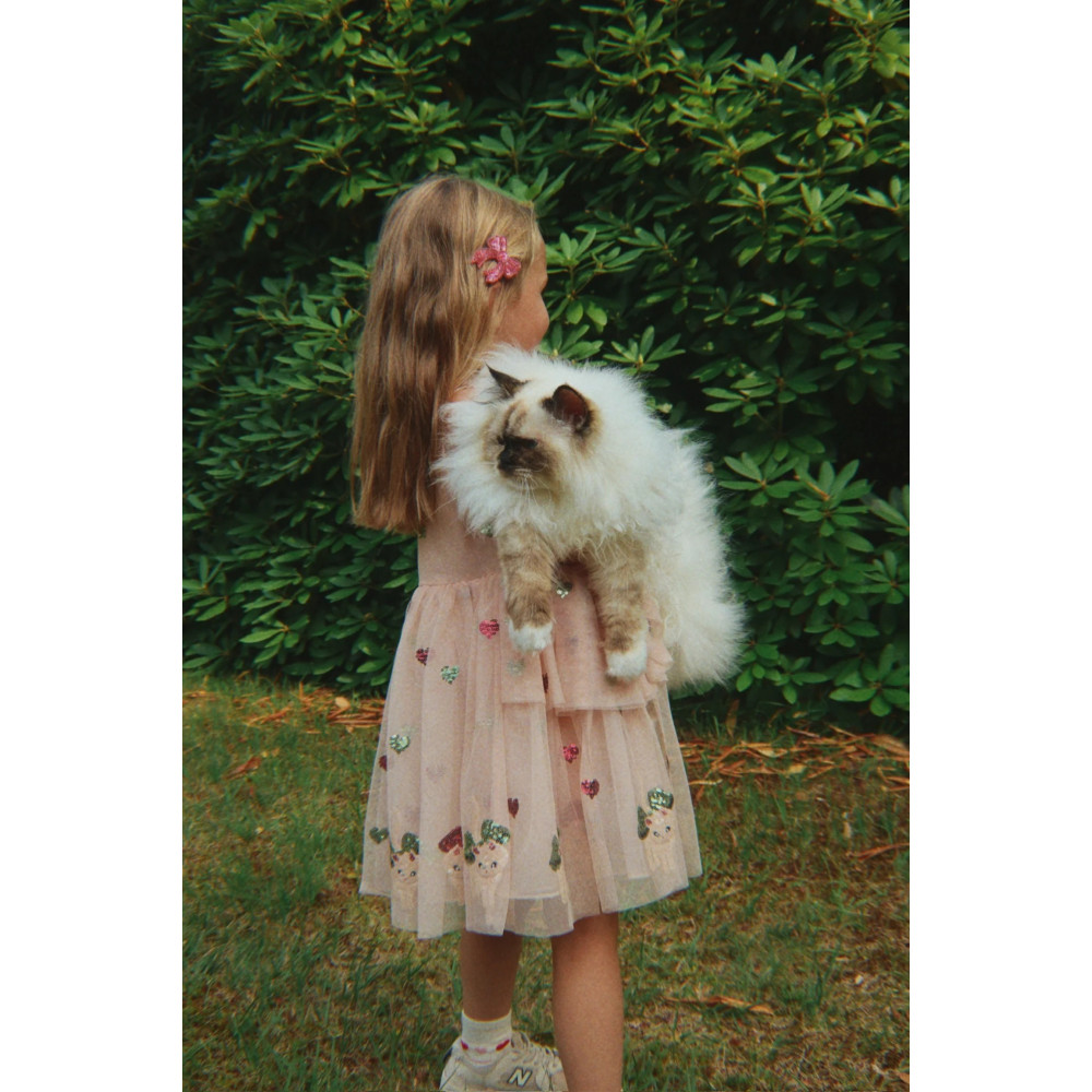 Our Yvonne dress is the stuff of dreams: a voluminous tulle piece with shimmering sequin details and a large bow in the back as the perfect finishing touch. The dress is designed in a flowy silhouette with a skirt that swooshes and sways when you play and dance, and is adorned with decorative kitties. Lined with soft cotton for comfortable wear.
