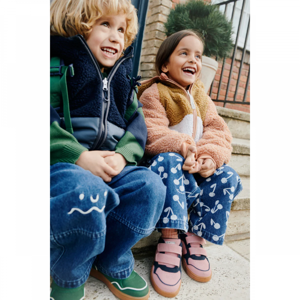 Cool wide-legged denim trousers in structured denim-cotton, giving them a relaxed vintage look. They have a loose, comfortable fit, and the all-over print adds a playful twist, making these pants a modern classic for your child's wardrobe. Wide-leg denim trousers with a playful print Crafted from 100% structured cotton Patch pockets at the front and on the back Comfortable fit with an adjustable elastic inside waistband