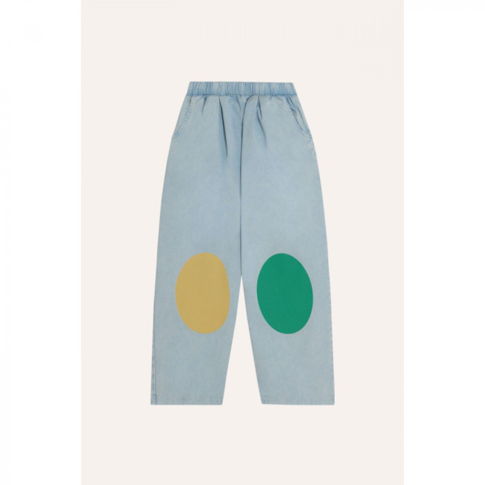 Jeans with pockets, on an elastic band. Decorative detail on the back pocket