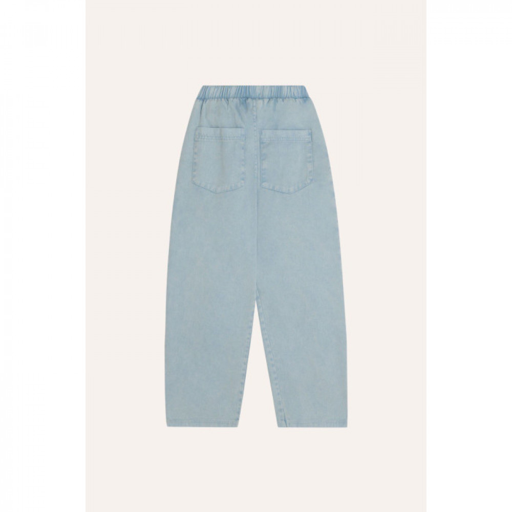 Jeans with pockets, on an elastic band. Decorative detail on the back pocket