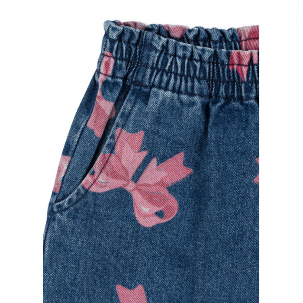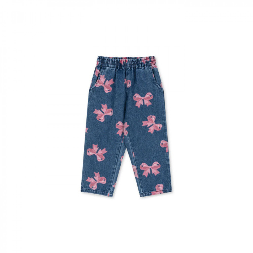 Soft denim pants with an elastic waist. Washing instructions: Please wash product separately, as it may bleed colour.