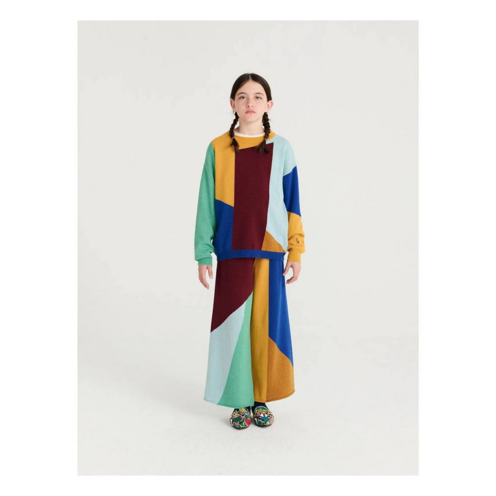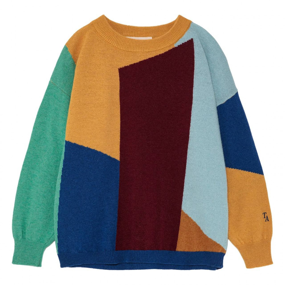 Aerosol Knitted Jumper are made of 30% wool, 30% viscose, 35% recycled polyamide and 5% cashmere. These vibrant knitted jumper feature a bold abstract color-block design in a rich colorful palette. They have a subtle "TA" embroidery in a contrasting blue, and a relaxed, wide-leg fit. Made in Spain.
