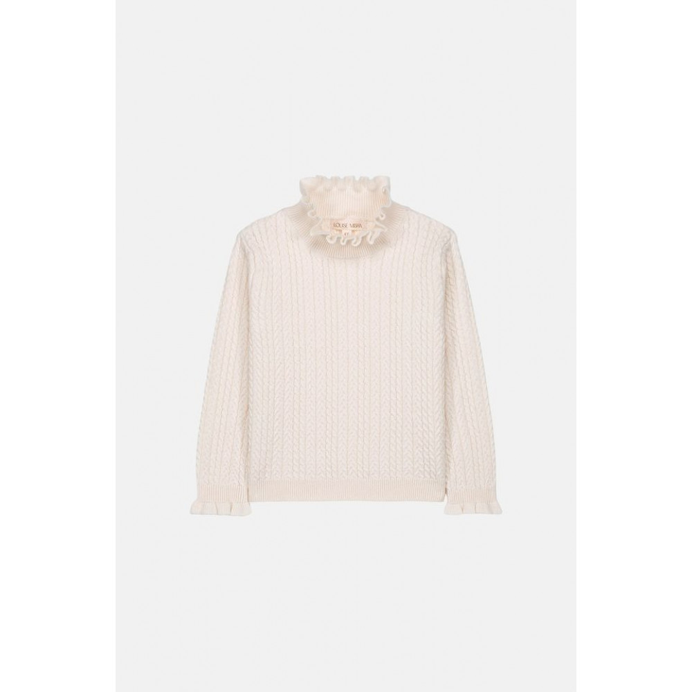 This Cream-colored Java sweater from Louise Misha is so elegant! In fine twisted knit, its cuffs and collar are ruffled. We love its Cream color and its knit combining wool and cotton to combine warmth and softness. Wear with Moldavia leggings and a Felvet coat for a warm and elegant look, in the mountain or elsewhere.