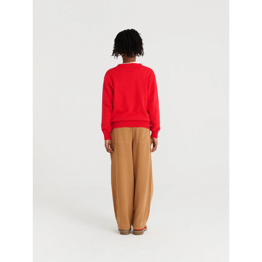 Jumper nº03 in Autumn Fig is made of 20% wool, 38% polyamide, 31% acrylic and 11% polyester. This knitted crew-neck sweater is designed with round neck, dropped shoulders and it is ribbed at cuffs and hem. It features our TA logo knitted on the front in contrast color. It has a relaxed fit. Made in Spain.