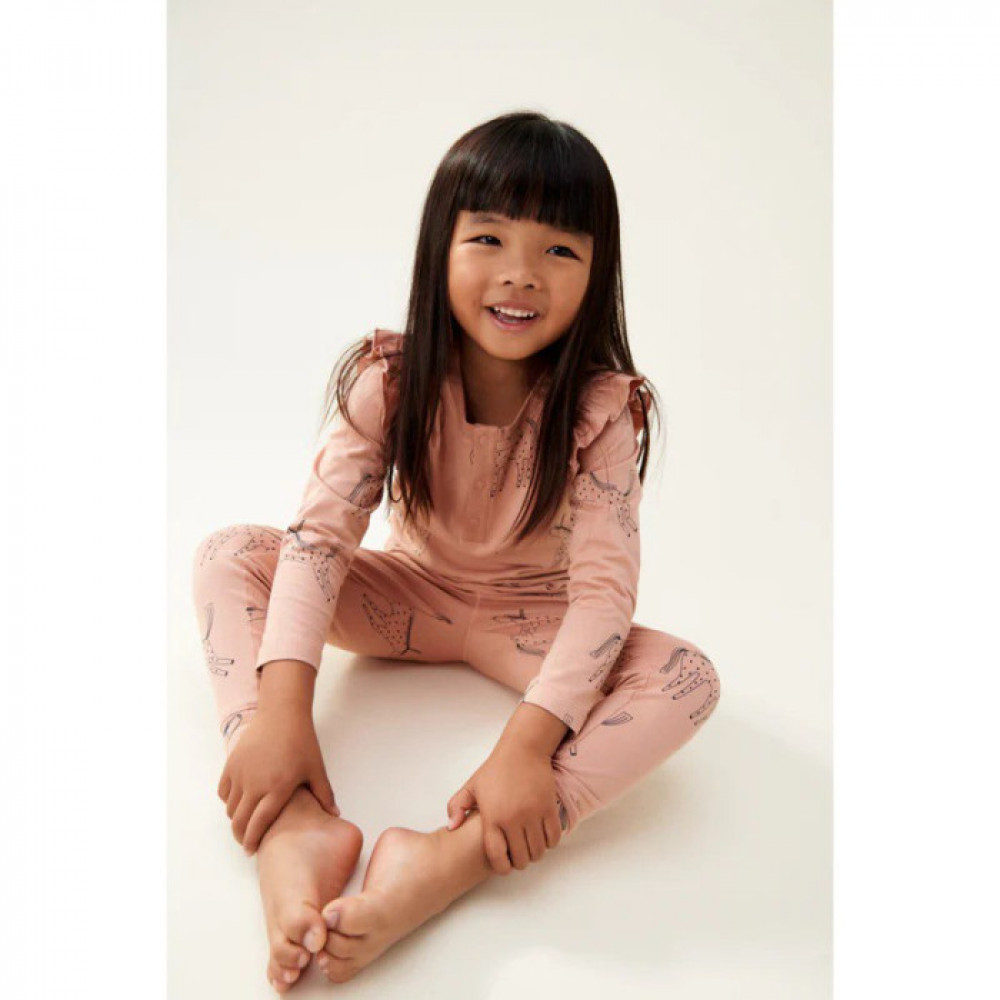 Printed cotton jersey pyjamas With decorative frill detail at shoulders Soft and breathable night wear With elastane to secure an ideal fit Long sleeves and long legs Top part with snap button opening Rib quality with beautiful stripes and solid colours