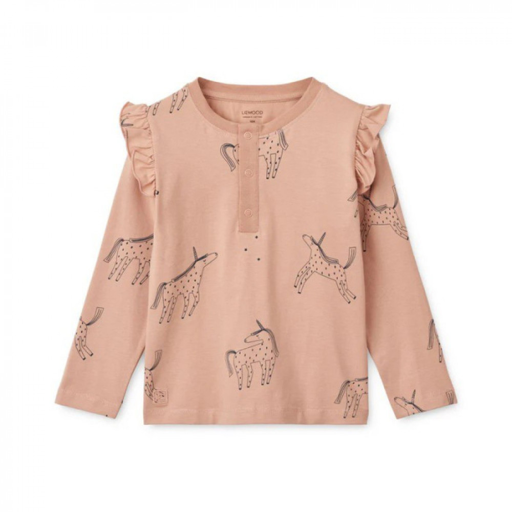 Printed cotton jersey pyjamas With decorative frill detail at shoulders Soft and breathable night wear With elastane to secure an ideal fit Long sleeves and long legs Top part with snap button opening Rib quality with beautiful stripes and solid colours