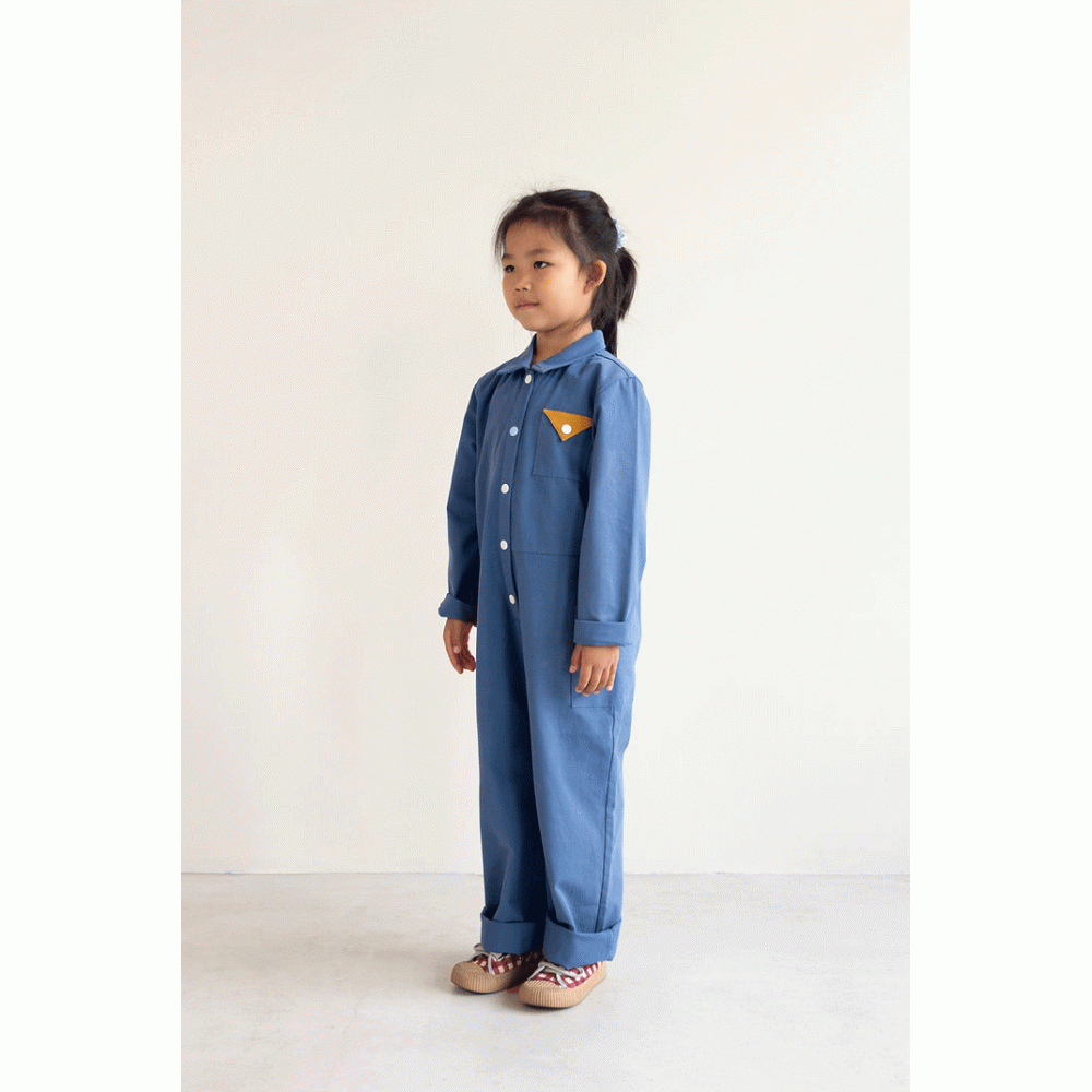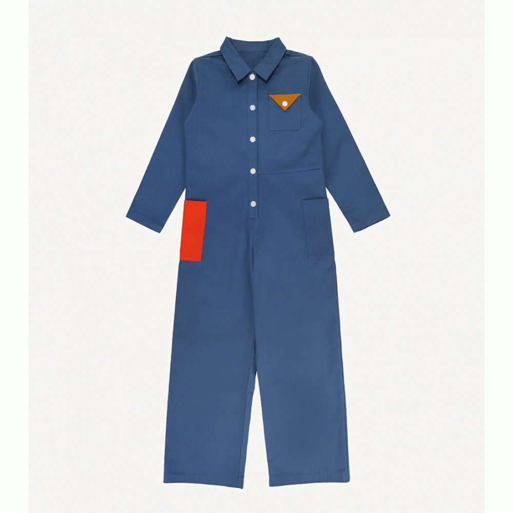 Put on one item and be ready to go on deck! Or you could accessorize with one of our scarfs, hats or belts. The jumpsuit closes with snap buttons and has 3 pockets. The colors of the pockets really make it stand out!
