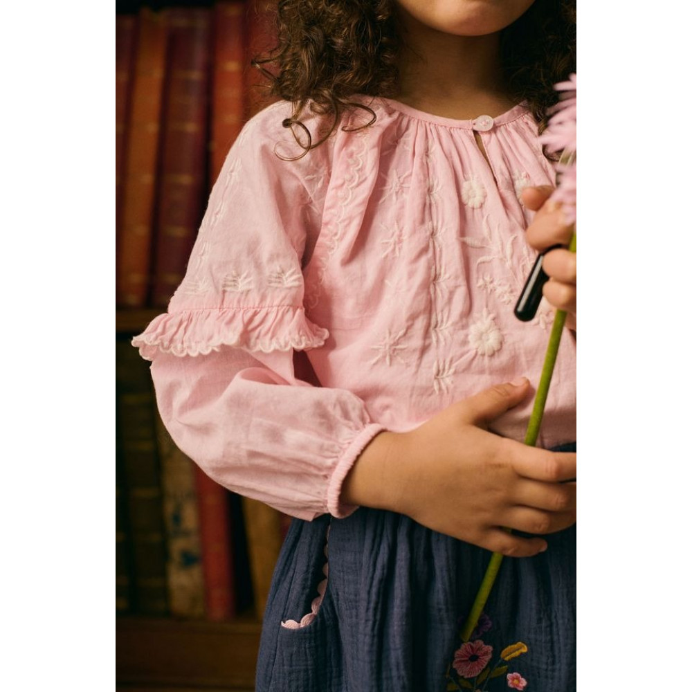 This beautiful Irisa blouse in organic cotton voile from Louise Misha will please all little girls who love bright pinks! We love the embroidered, ruffled and scalloped details. The blouse has a button placket in the back. Elasticated cuffs.
