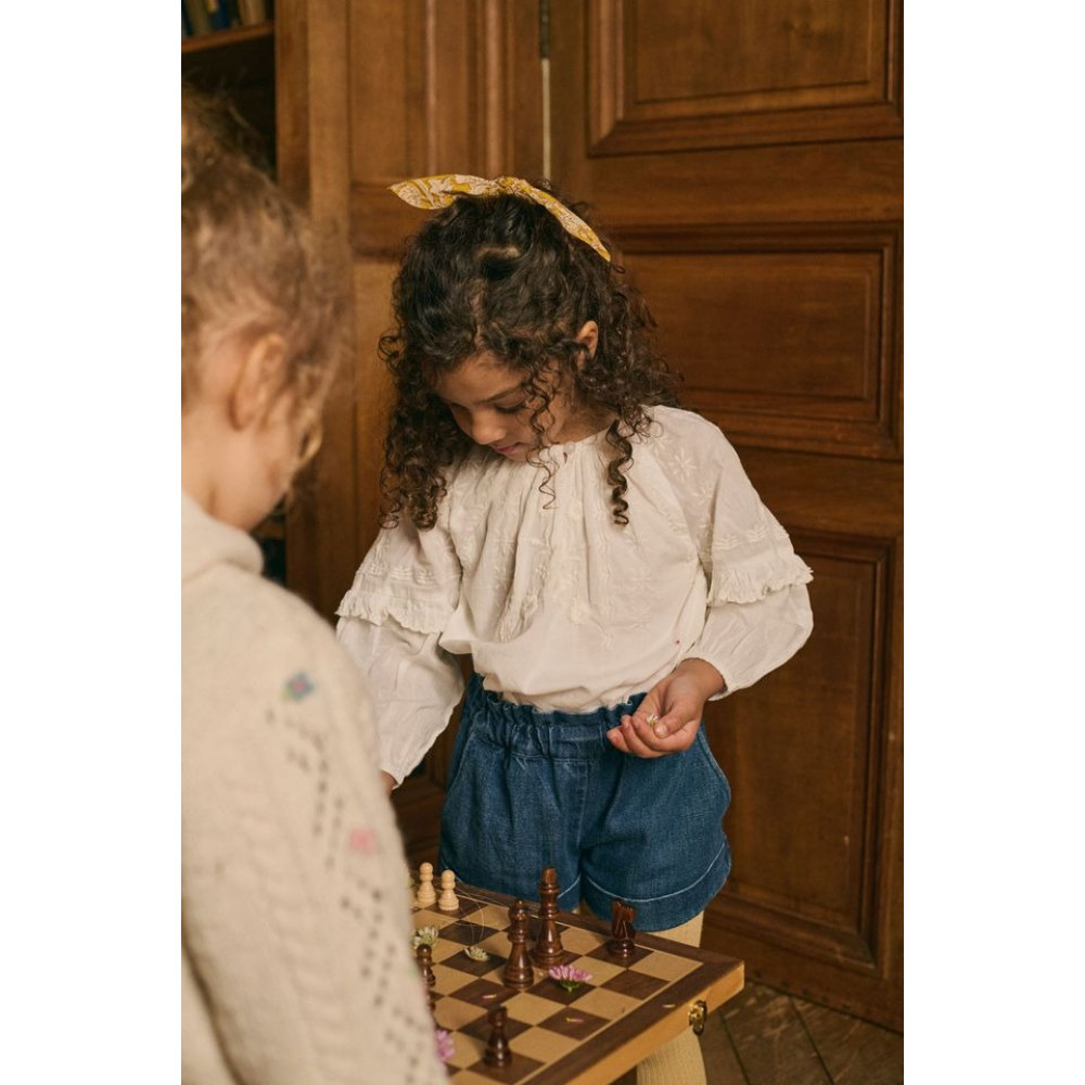 This beautiful Irisa blouse in organic cotton voile from Louise Misha will please all little girls who love bright pinks! We love the embroidered, ruffled and scalloped details. The blouse has a button placket in the back. Elasticated cuffs.