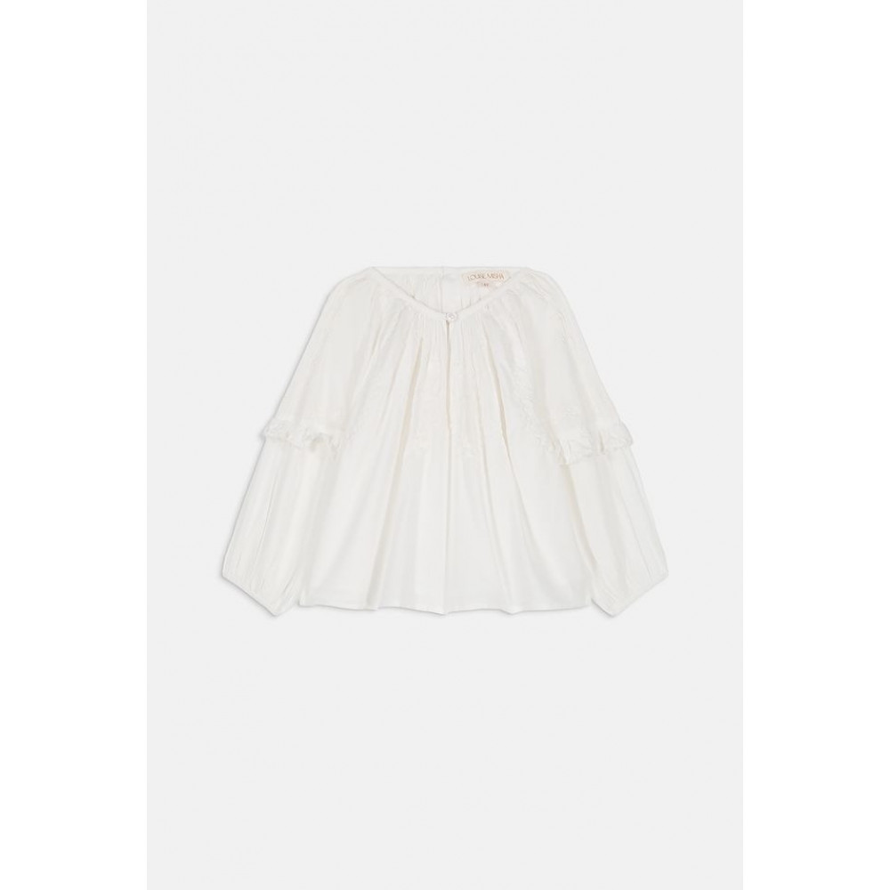 This beautiful Irisa blouse in organic cotton voile from Louise Misha will please all little girls who love bright pinks! We love the embroidered, ruffled and scalloped details. The blouse has a button placket in the back. Elasticated cuffs.
