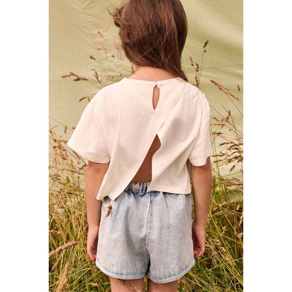 Louise Misha presents kidswear primed for budding trendsetters. The Asya denim shorts feature a layered design with delicate embroidery and an elasticated waistband.