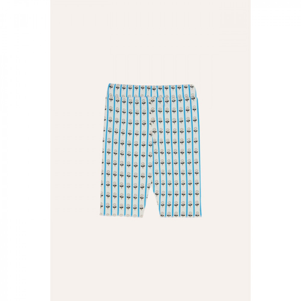 Short leggings in rib 100% cotton with blue stripes combined with white flowers all over it. You can make a total look with the “Flowers Kids Rib Tshirt” or combine it with any kind of garment, you choose!