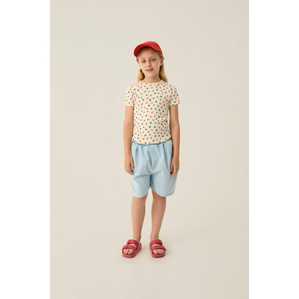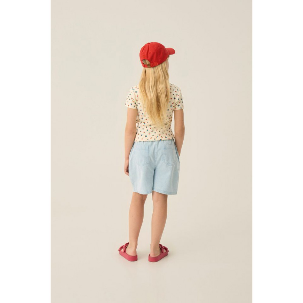 These shorts in cotton woven quality in a light denim color is the perfect garment to complete all your summer outfits. It has elastic waistband for more comfort.