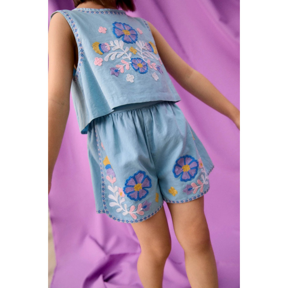 Louise Misha focuses on natural materials with exceptional softness and comfort in her children's collection. The Maïwen shorts, made from pure cotton, feature floral embroidery and an elasticated waistband.