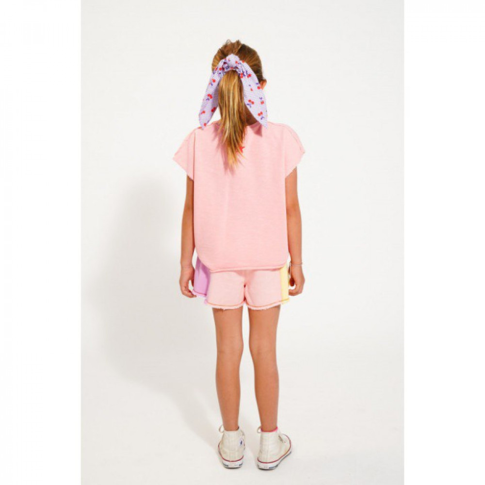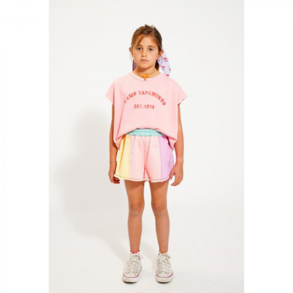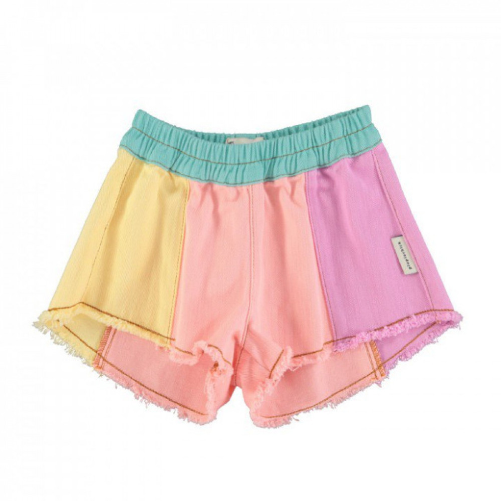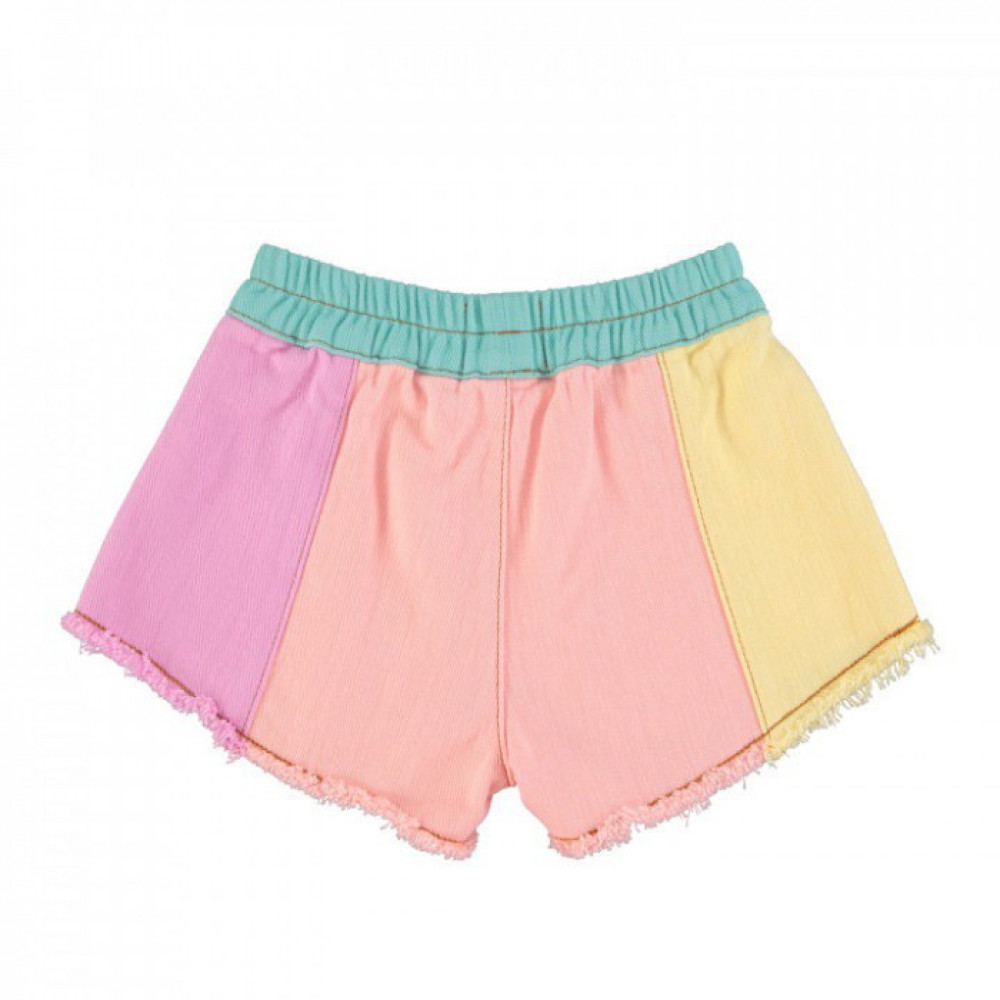 Shorts loose fit with fringe ending and adjustable elastic waist. Multicolor pastels & cotton twill.