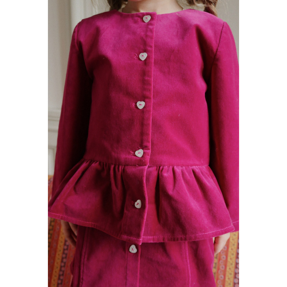 Soft skirt in a heavy velvet fabric that adds a sharp silhouette. Designed with heart shaped front buttons and decorative scallop edges. Pair with the matching Barbara shirt for a velvety soft and exclusive look.
