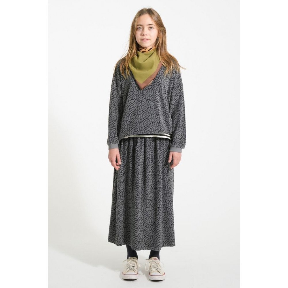 Long skirt. Elasticated waist and pleated effect. Made in Portugal