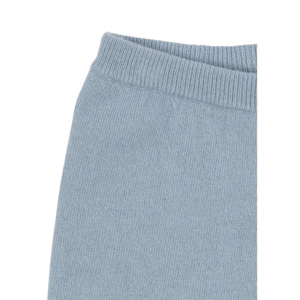 Knitted cardigan with front pockets, puff sleeve details, and scallop edges. Soft knit pants with a single back pocket and a comfortable elastic waist. Made from 50% lambswool and 50% cotton. Washing instructions: This style should be machine washed on gentle wool cycle.