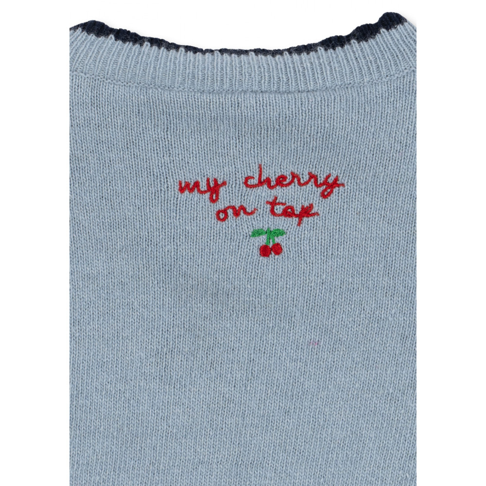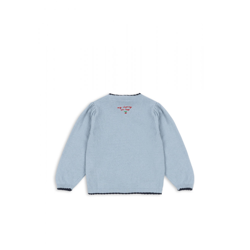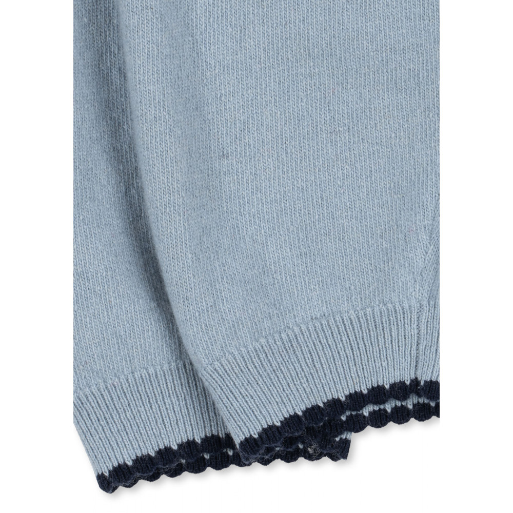 Knitted cardigan with front pockets, puff sleeve details, and scallop edges. Soft knit pants with a single back pocket and a comfortable elastic waist. Made from 50% lambswool and 50% cotton. Washing instructions: This style should be machine washed on gentle wool cycle.