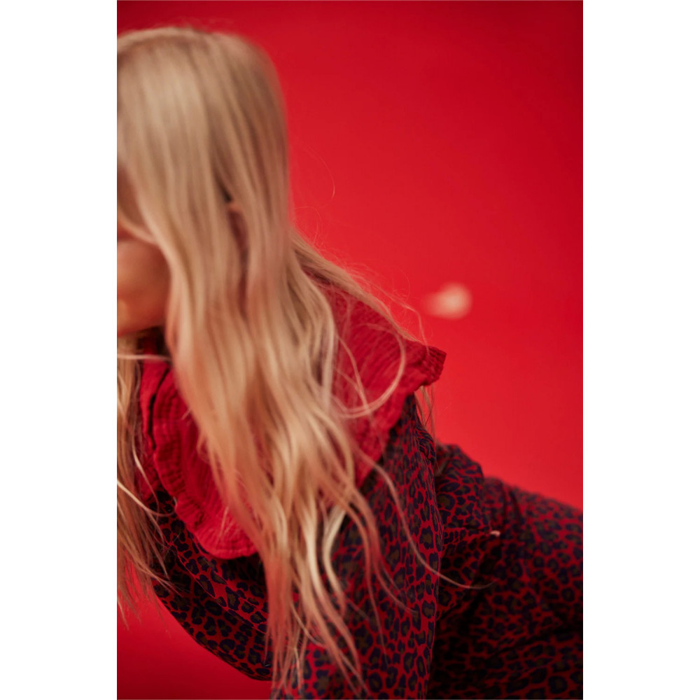 Sweatshirt for girls in premium brushed GOTS-certified organic cotton fleece. Designed with an oversized Peter Pan collar in a solid color, finished with delicate ruffle trim for a charming touch. Features puffed long sleeves with elasticized cuffs and an elastic hem for a soft, gathered fit. All-over animal print. Made from GOTS-certified organic cotton. Premium brushed fleece for superior warmth and comfort. Soft exterior and a toasty, cozy interior. Kind to both skin and the environment. A sustainable choice for your girl’s wardrobe.