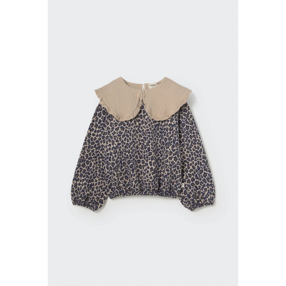 Sweatshirt for girls in premium brushed GOTS-certified organic cotton fleece. Designed with an oversized Peter Pan collar in a solid color, finished with delicate ruffle trim for a charming touch. Features puffed long sleeves with elasticized cuffs and an elastic hem for a soft, gathered fit. All-over animal print. Made from GOTS-certified organic cotton. Premium brushed fleece for superior warmth and comfort. Soft exterior and a toasty, cozy interior. Kind to both skin and the environment. A sustainable choice for your girl’s wardrobe.
