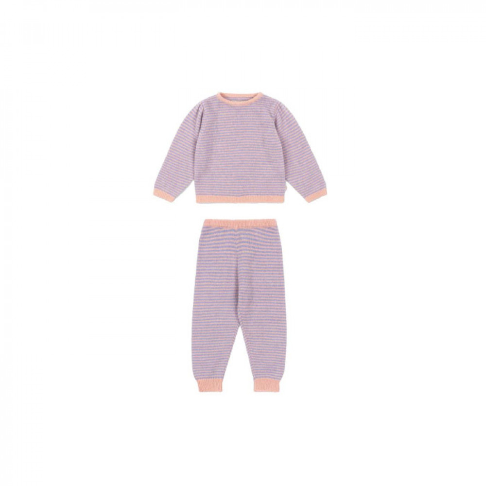 Soft and fluffy wool blend sweater with decorative puff sleeves. A warm and wearable classic with a round neck and rib hems. Soft and fluffy wool blend knit pants. A warm and wearable classic with a flexible elastic waistband and ankle cuffs.