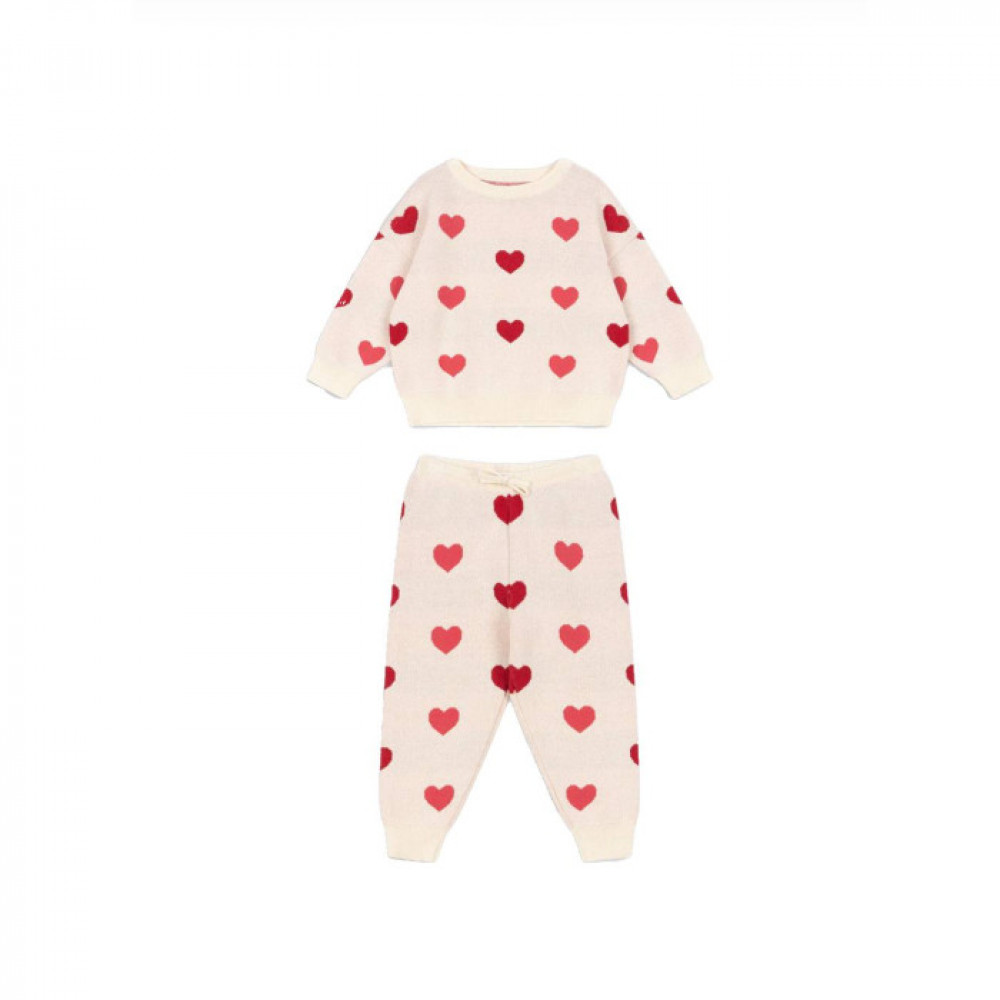 Soft knit blouse in a slightly heavier quality. Designed with broad rib hems and slightly dropped shoulders for a relaxed fit. Jacquard knitted pants in a relaxed fit with a flexible elastic waist.