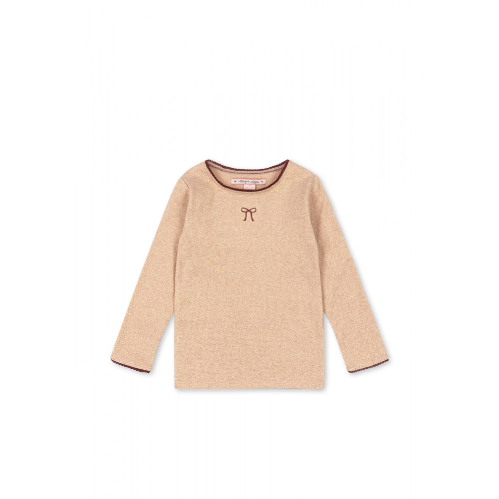 Soft and stretchy rib blouse. A perfect everyday piece woven with a lurex thread for a little bit of shine. Designed with decorative picot edges around the neck line. Soft and stretchy leggings with a shiny finish. Features an elastic waist and a straight, slim fit.