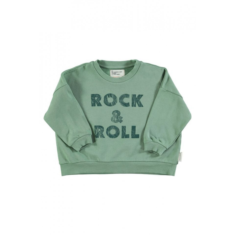 Unisex sweatshirt with frontal and back prints. Seam details. Carded organic cotton fleece. Ribbed cufs. Baby sizes have buttons on the shoulders. Made in Portugal