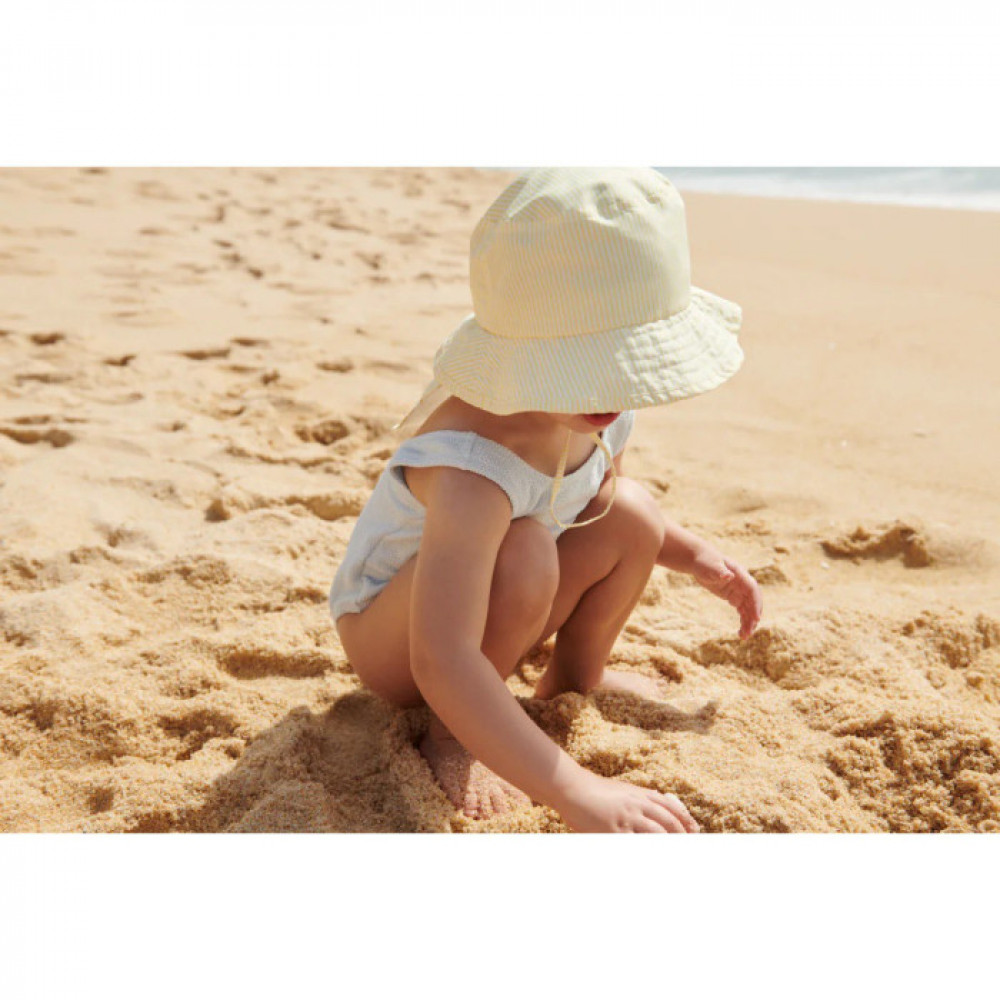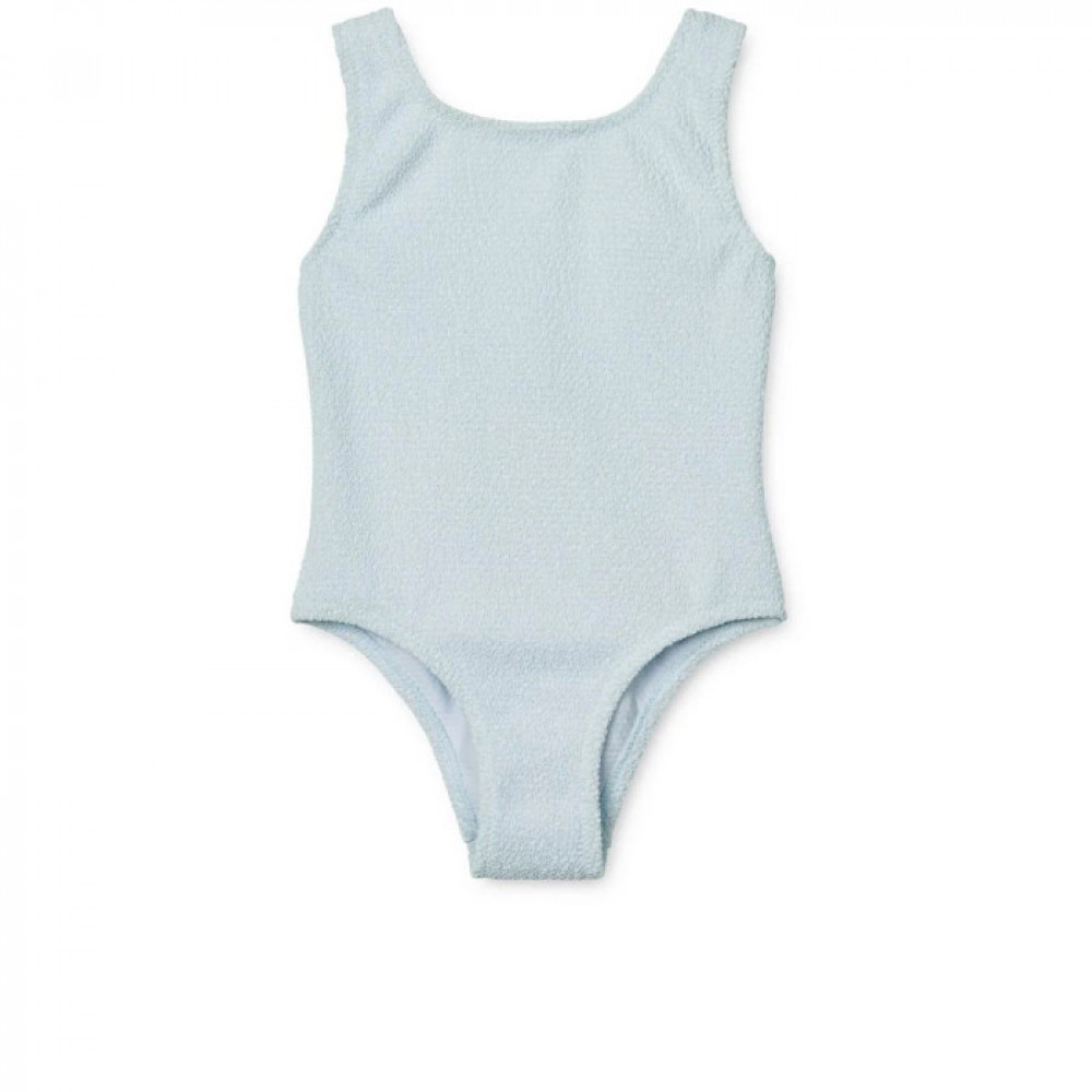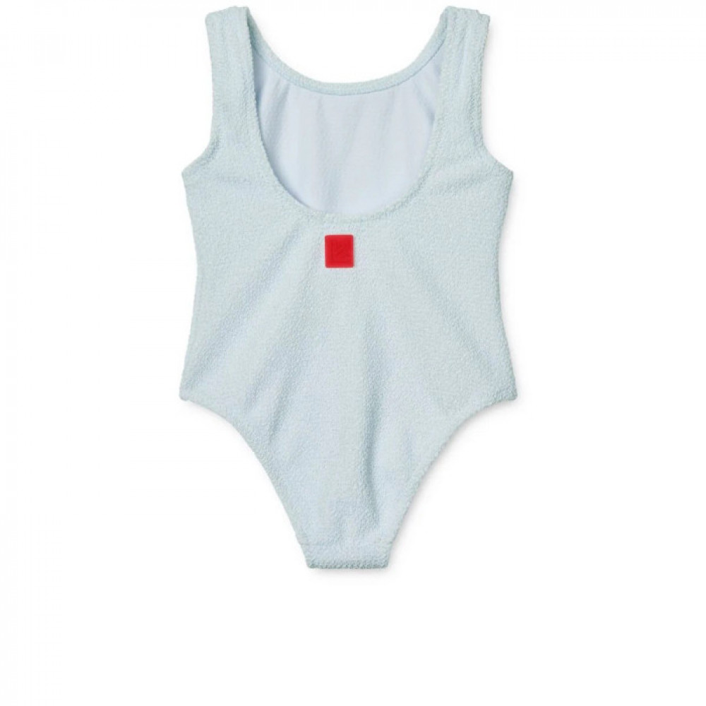 Let your little one jump into the pool or dive through the waves in the sporty new Bianco swimsuit. The crinkle fabric ensures a snug fit great for swimming. While the brightly coloured silicone logo at the back offers a cool contrast to the muted colour of the swimsuit. Cool swimsuit in crinkle-effect fabric UV protection factor 40+ Soft and super stretchy for a snug fit Deep neck and silicone logo in bright colour on the back