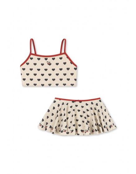 Soft bikini crafted from stretchy and quick-drying recycled polyester that is easy and comfy to wear for long days at the beach or pool. Designed like a classic two-piece set with a top with a square neckline and slim straps and bikini bottoms with a soft skirt effect.