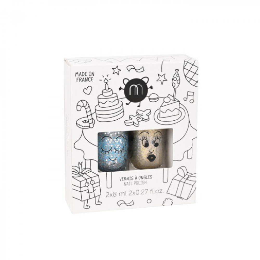 Our polishes can be removed with water and soap Discover the "Boom" set, the perfect accessory to brighten up kids' festive moments with a touch of magic! This duo of nail polishes, specially designed for little hands, features two vibrant colors: Aurora, a sparkling gold polish that shines like stars, and Luna, a glittery blue polish with enchanting reflections. Made in France Formulated with 54% water Suitable for ages 3 and up Removable with water and soap