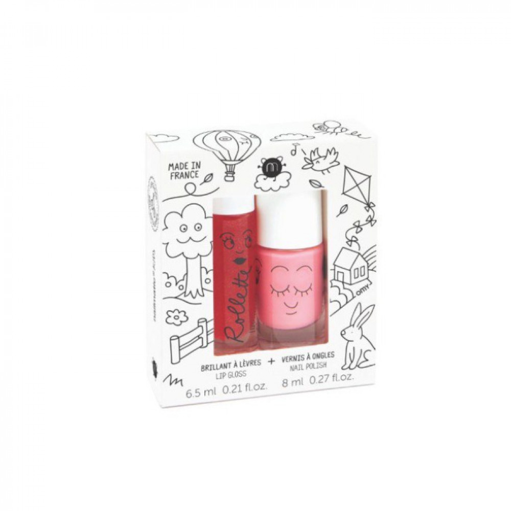 The Holidays gift set brings together two fun essentials for budding little stars. Inside, a strawberry lip gloss that leaves a delicious and sparkling veil on the lips, and a water-based children’s nail polish in Cookie pink, perfect for fun and colorful manicures! Designed for children aged 3 and up, these products are made in France, safe and gentle on your little one's delicate skin. 1 glass bottle of 6.5 ml + 1 nail polish of 8 ml.