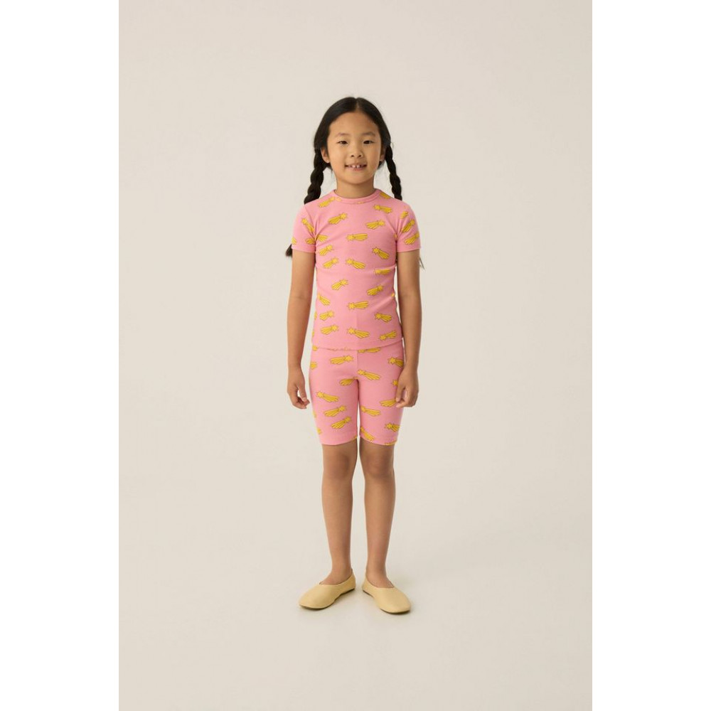 Biker leggings in rib 100% cotton GOTS with a funny print of falling stars all over it. It has elastic inside waistband for more comfort. Wear it all summer!