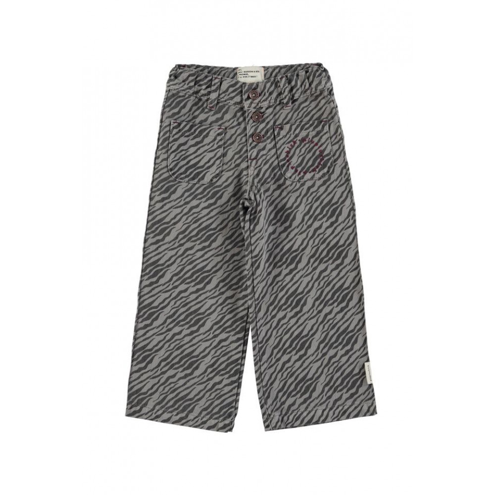 Flare trousers with adjustable waist. Belt loops at waist. Front buttons. Two front pockets, one of them detailed with embroidered bordeaux logo. Made in Portugal