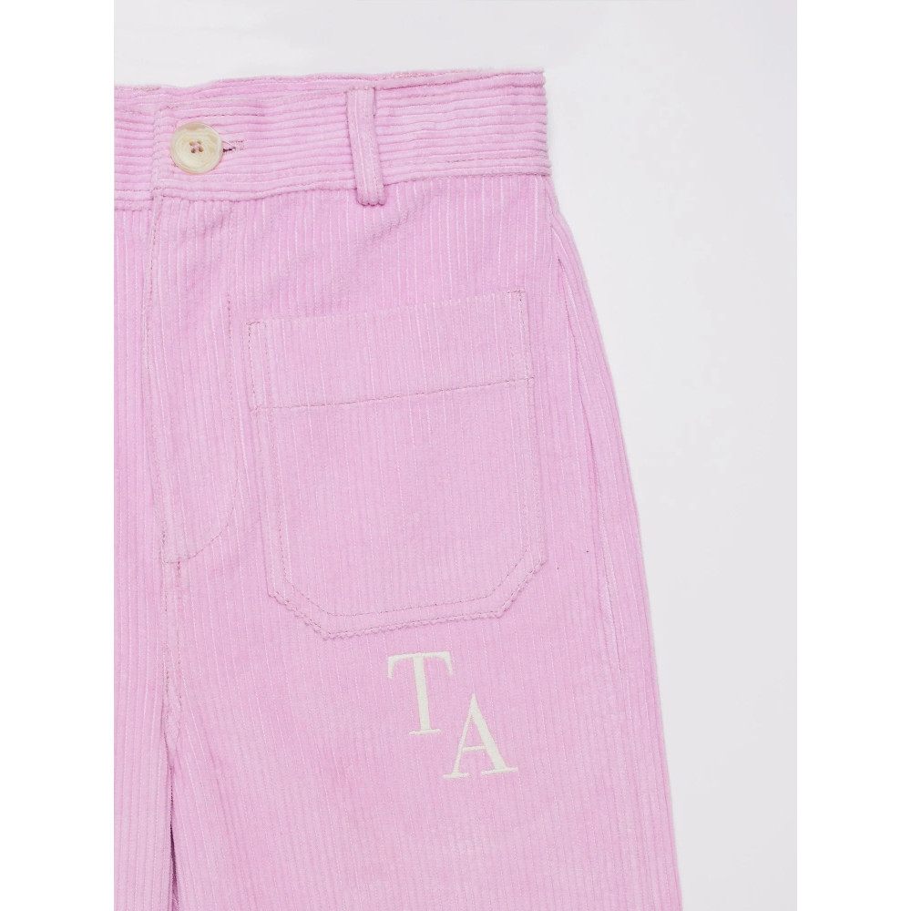Our Trousers nº03 Pink Lavender are made of 100% cotton and have an embroidery with our TA logo on the front. These trousers are designed with adjustable waistband and patch pockets and have laces on the sides. They have a relaxed fit. Made in Spain.