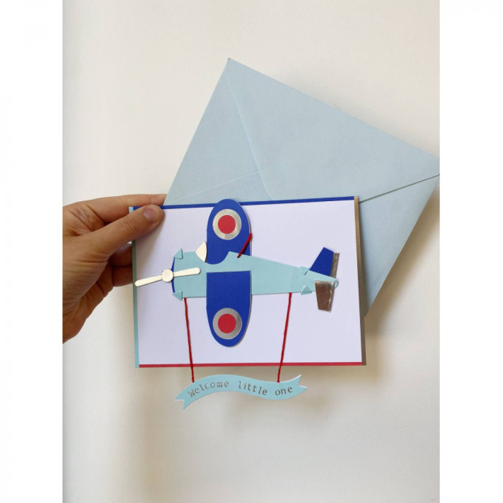 This brilliant aeroplane card has just zoomed in to say “Welcome little one”! The perfect card to send your love and best wishes to the new arrival and his or her family. The shiny aerophane is a detachable mobile, so will look amazing hung in the nursery. Sold in multiples of 6 Detachable mobile Red thread with silver foil detail Pale blue envelope Inside Message: Welcome Little One Made from eco-friendly paper Product dimensions: 178 x 127mm Pack dimensions: 184 x 133 x 3mm