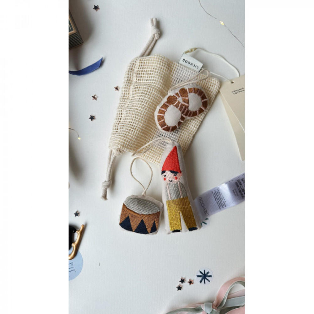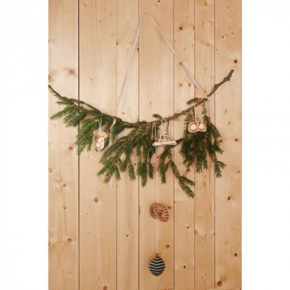Deck the halls, rooms or windows with the decorative and tactile Bethany cotton ornaments, with 100% recycled polyester filling. Christmas cotton ornaments Includes 3 ornaments Festive Christmas decoration for tree or windowsill Embroidered patterns in organic cotton With cotton string for hanging OEKO-TEX • CE-marked • CA-marked Dimensions: Hauteur (cm) 12, Width (cm) 3