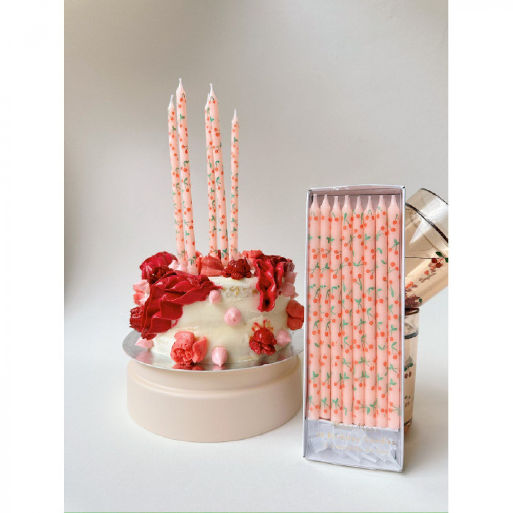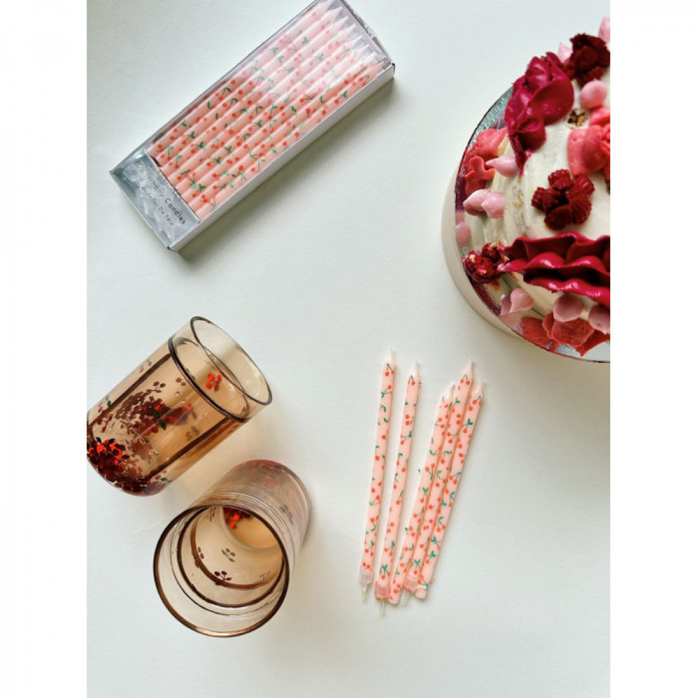 The candles feature a cherry transfer print The pack includes clear plastic candle holders Pack of 16 Product dimensions:Candle height – 5.75 inches