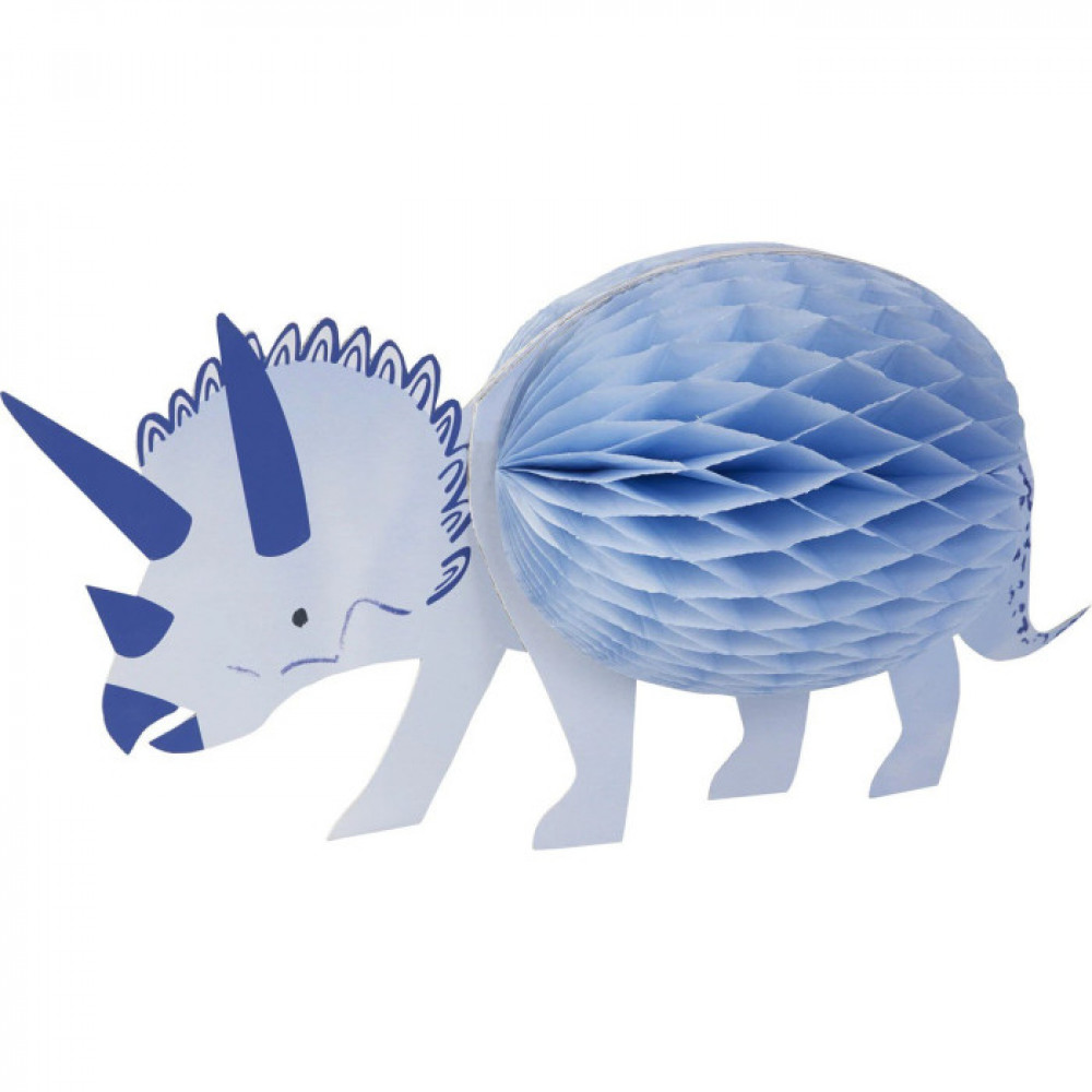 Three large honeycomb dinosaurs invade your party, looking for fun. Honeycomb on both sides, crafted from red, blue and mint tissue paper. Not just for parties, they make wonderful kids' room decor. Honeycomb is held open with supplied paperclips They are large -- approximately 30 x 58 cm