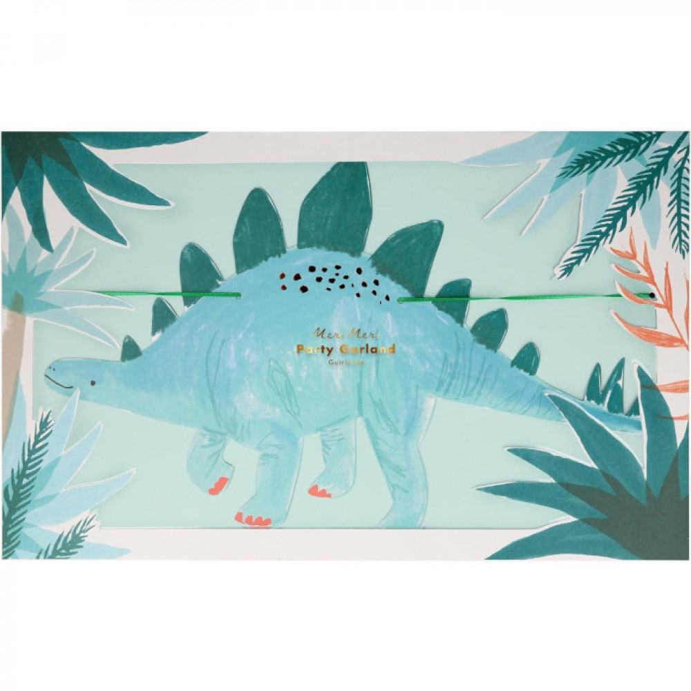 Everything you need to decorate your Jurassic party. 10 DINOSAURS. Has 10 beautifully illustrated and crafted dinosaur pennants. FOLIAGE PENNANTS. Includes 20 foliage pennants, with green and copper foil, and lots of crepe streamers. 35.6 x 0.8 x 13 centimetres