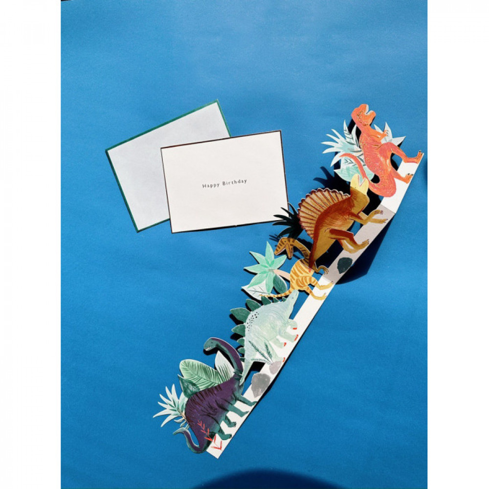 This terrific dinosaur concertina card is wonderful for the birthday girl or boy to open out and display on the big day, and afterwards as a decoration too. It's cleverly designed and crafted to look amazing. Shiny copper foil details Message: Happy Birthday (on insert) Product dimensions: 22.5 x 5 inches