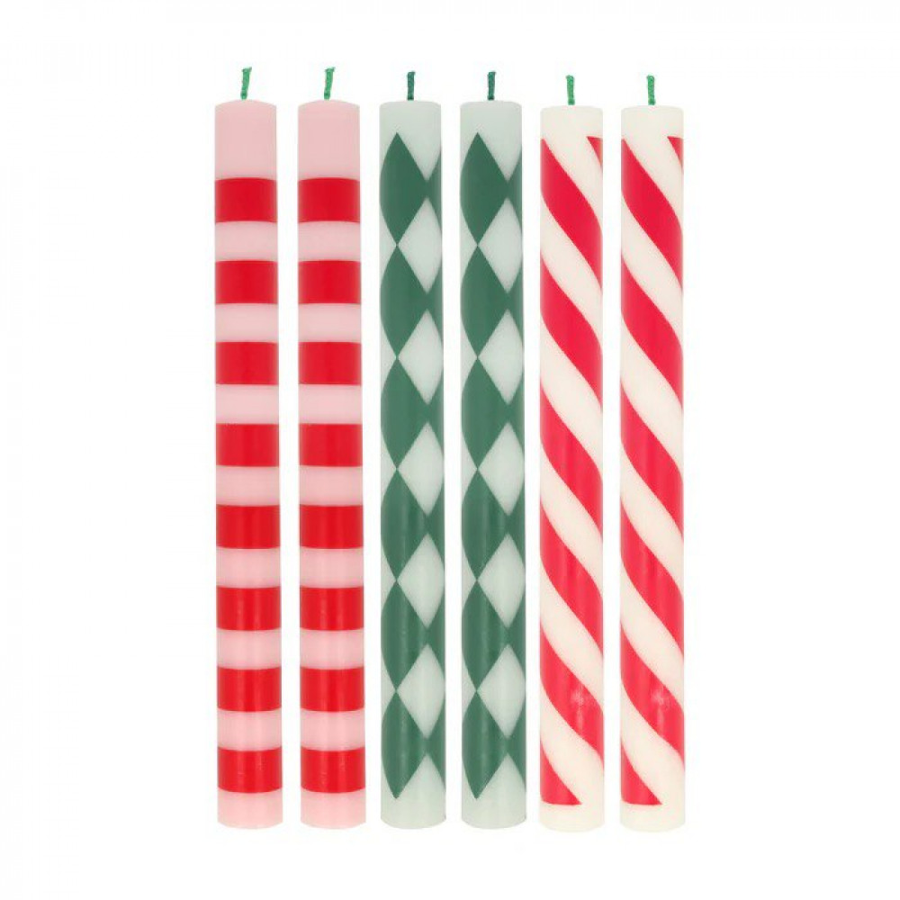 Stripes, stripes, stripes...so nice we've made them thrice! This set of Christmas candles includes 3 fabulous on-trend stripe designs, in traditional festive colors mixed with a modern pop of pink, and statement green wicks. They'll look perfect on the party table or on the mantel. A wonderful present for someone who loves special candles, or a great host gift.