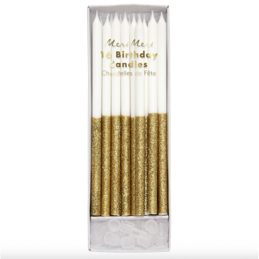 These gorgeous two-tone glittery candles will look really impressive on a special celebration cake.
