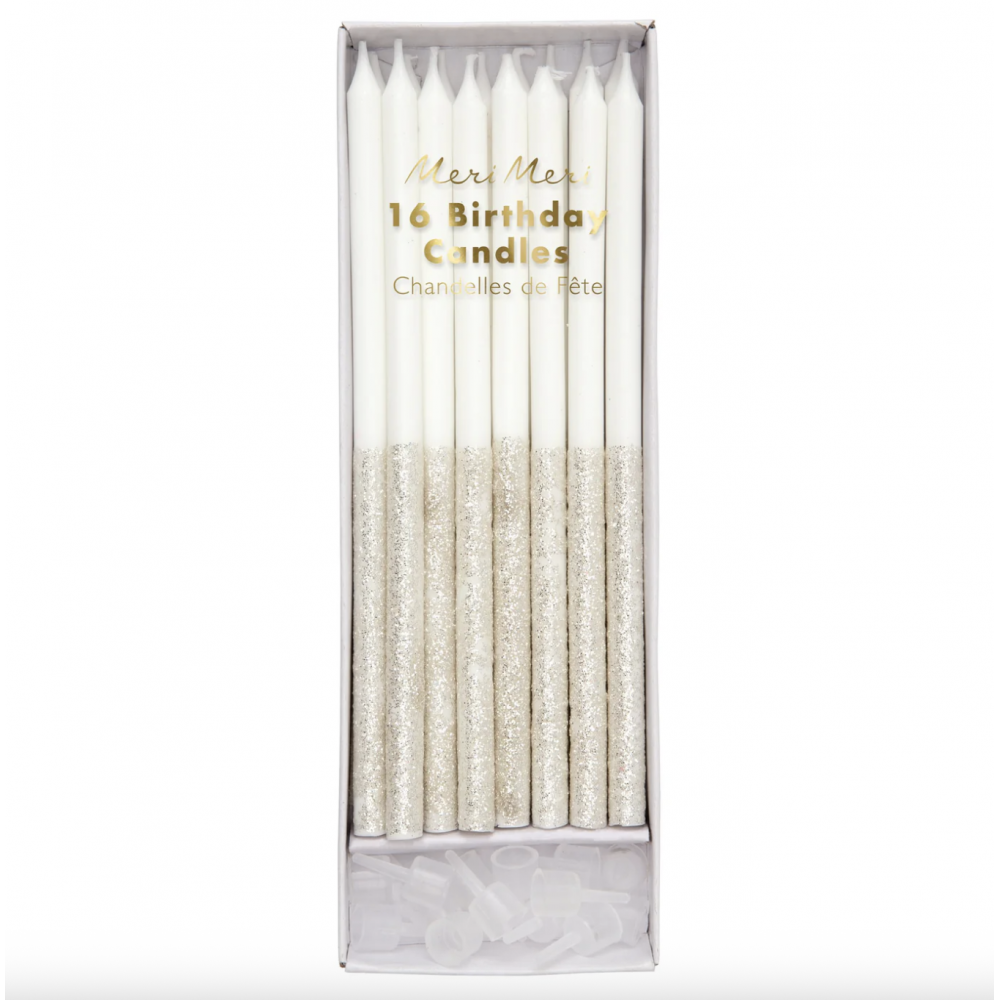 These gorgeous two-tone glittery candles will look really impressive on a special celebration cake.