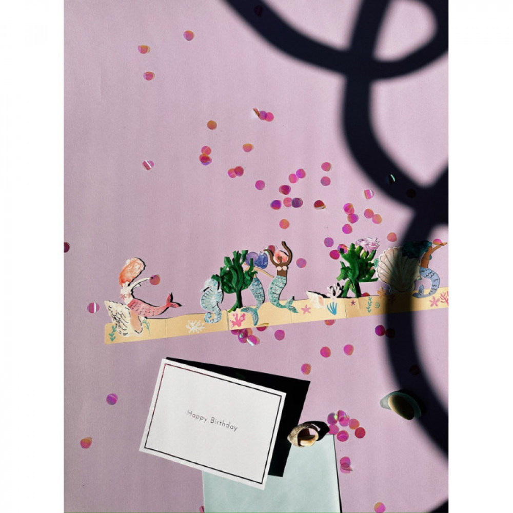 Open out this concertina card to reveal an under-the-sea paradise, complete with beautiful mermaids, seaweed, shells and an adorable seahorse. This sensational card, with lots of 3D embellishments, will be a delight to display for the birthday and to use as a decoration afterwards. Green tissue paper embellishment Shiny pale pink and blue foil details Co-ordinating envelope Message: Happy Birthday (on insert) Product dimensions: 20.5 x 4.75 inches