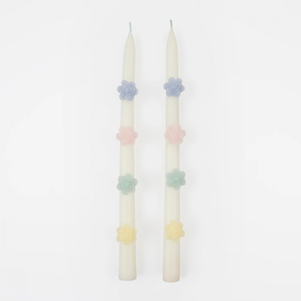 Who knew candles could be such a work of art? These elegant tall candles will make a statement on your party table or mantel. Look at the attention to detail – pink ombre coloured wax flowers and pink wicks. They make a special host gift too. Pink wax taper candles Pink ombre coloured wax flowers Pink wicks Burn time is 5 hours Fragrance free Pack of 2 Product dimensions: Candle height - 279mm