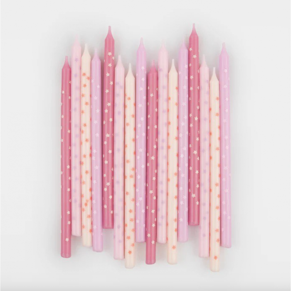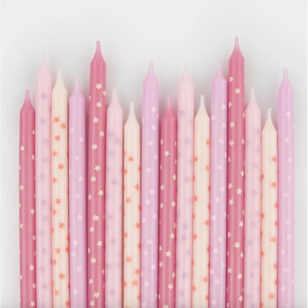 Want to add the wow factor to your cakes or big cupcakes? Pop on a fun candle. These pink beauties, in shades of pink wax with pink star transfers, will make all your guests feel like stars! Wax candles in shades of pink Printed star pattern Pack of 16 in 4 colours Product dimensions: Candle height - 146mm
