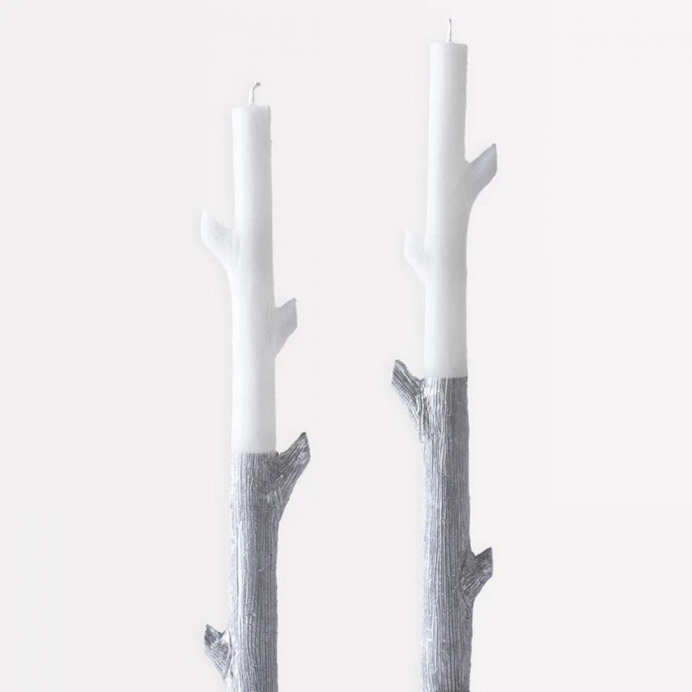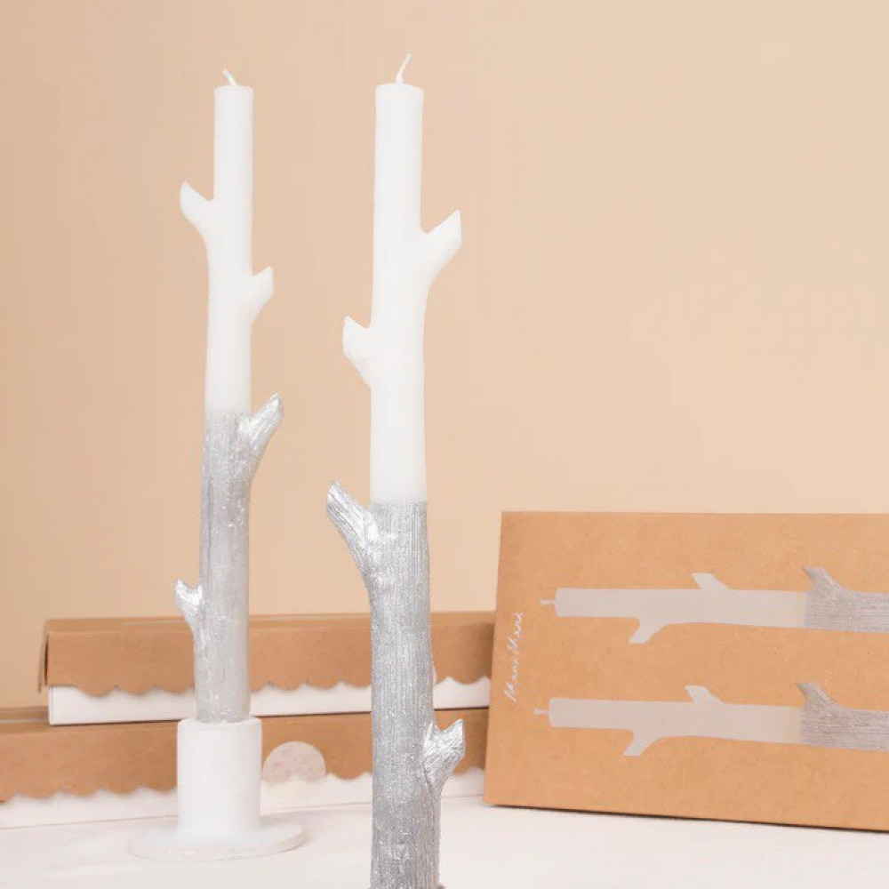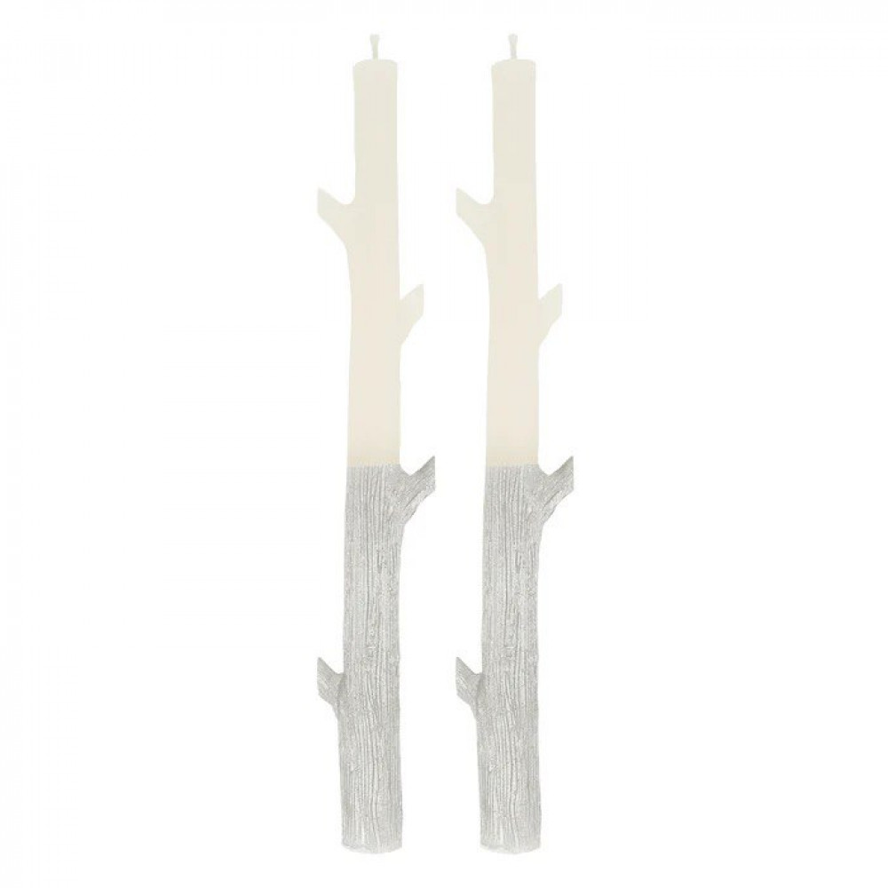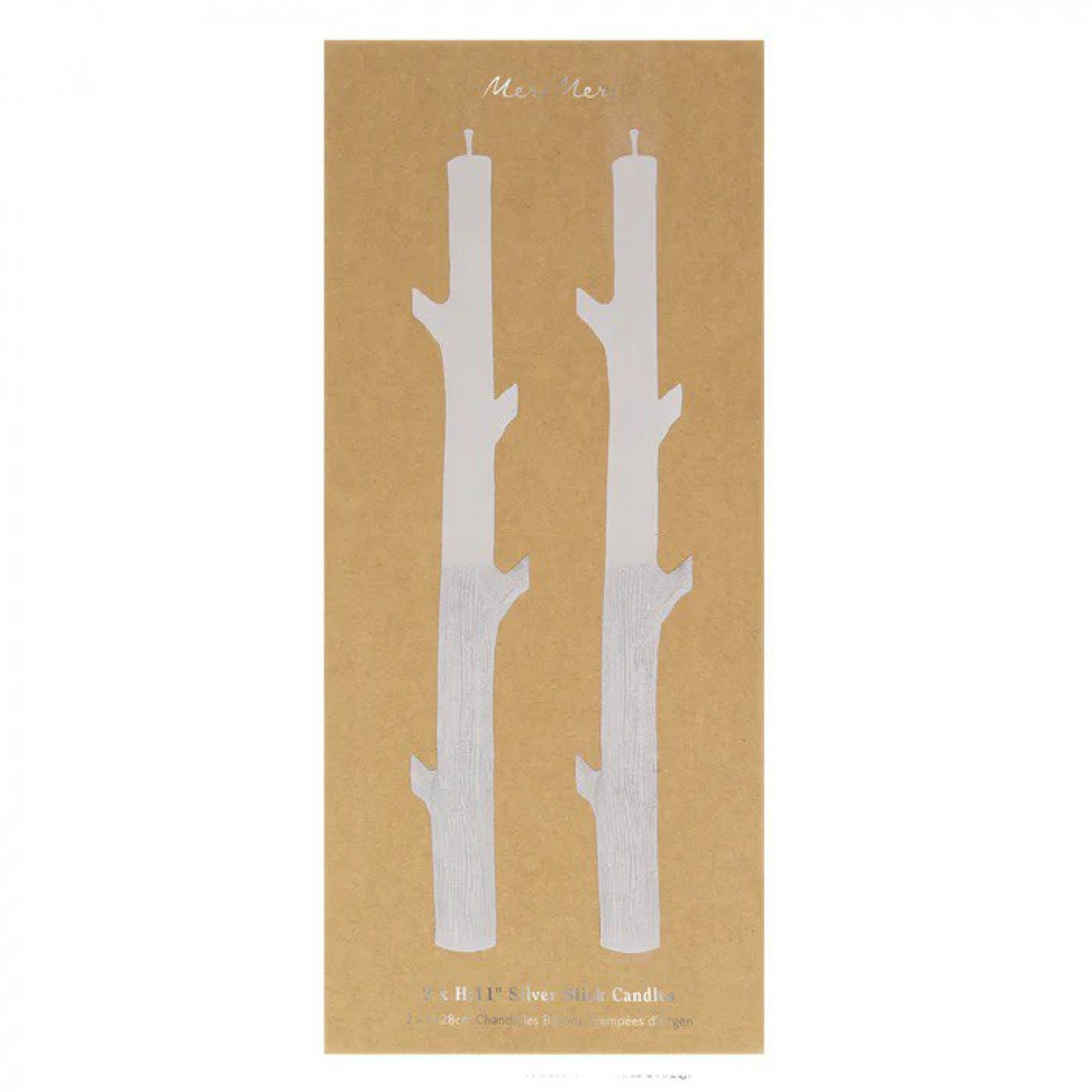 Stick candles are having a moment, so our clever designers have created these in our special Meri Meri style. Shiny silver details make these stand out, and they're perfect to add to your Halloween and/or winter wonderland setting. Place them on the table or the mantel for a decorative effect. They make a great present too for someone who loves candles, or as a host gift. 2 White textured candles Dipped in shiny silver ink Burn time is approximately 3 hours Unscented Pack of 2 Product dimensions: Candle height - 279mm